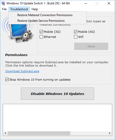 Windows 10 Update Switch 2.0.0.566 — утилита для управления обновлениями операционной системы Windows 10. Программа позволяет отключать и включать апдейты в один клик, устанавливает лимитное соединение для предотвращения фоновой загрузки обновлений, доступна в портативной версии и не требует установки.