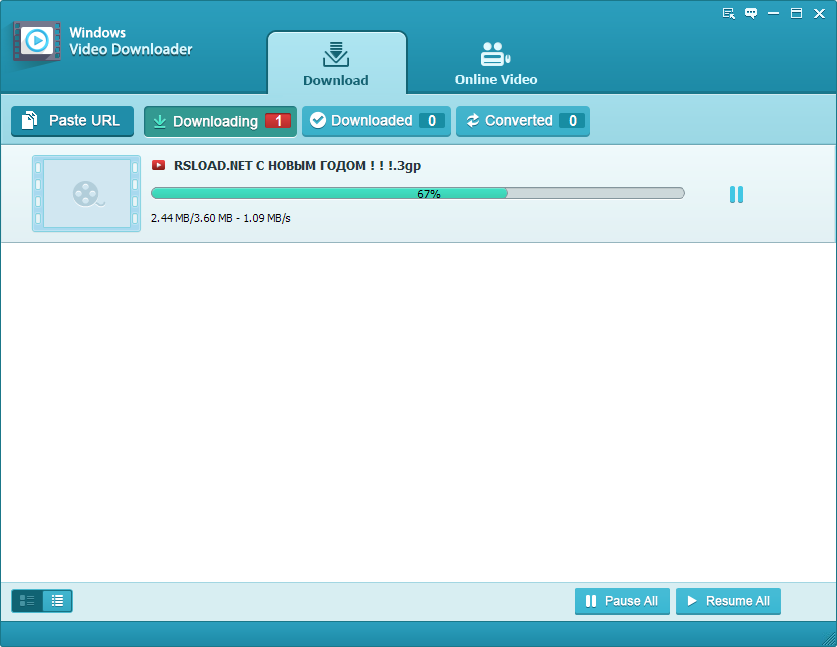 Использование программы начинается с установки и запуска, после чего открывается стартовое окно с анимированной заставкой в стиле киноплёнки. Первый шаг — переход во вкладку «URL» и вставка адреса видео. После анализа ссылки приложение определяет доступные форматы и разрешения. Далее пользователь выбирает нужный параметр и запускает процесс загрузки, который отображается во второй вкладке. Здесь же можно отслеживать прогресс, скорость и оставшееся время. После завершения скачивания видео можно конвертировать с помощью встроенной функции, перейдя в соответствующий раздел.