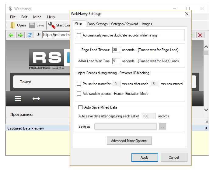 Работа с WebHarvy