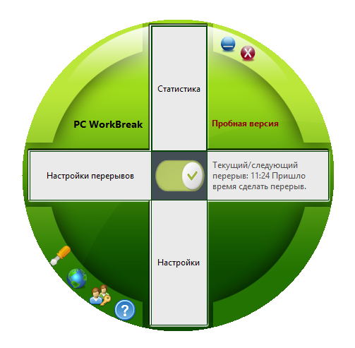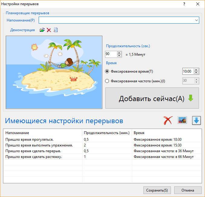 Программа эффективно напоминает о перерывах, что способствует снижению усталости и поддержанию продуктивности в течение рабочего дня.