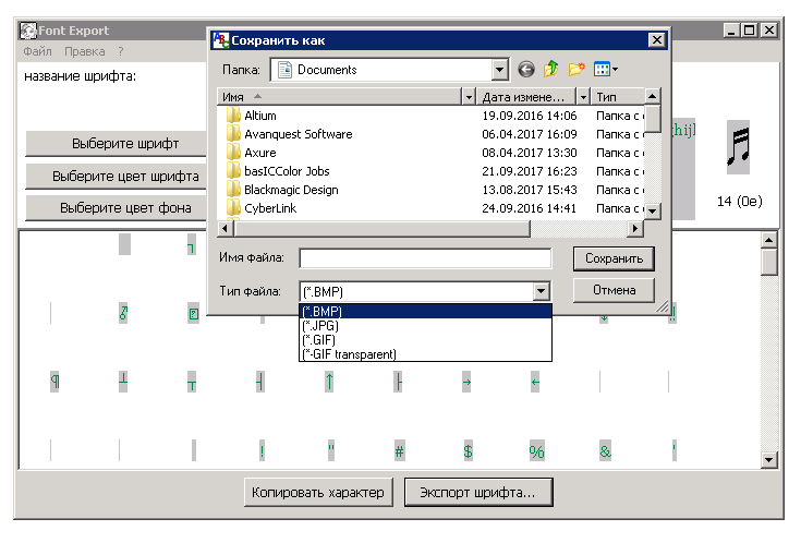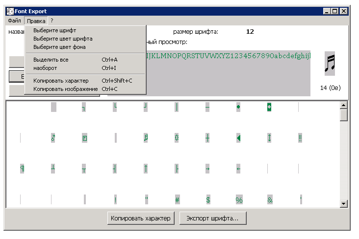 - Экспорт отдельных символов из любого установленного шрифта