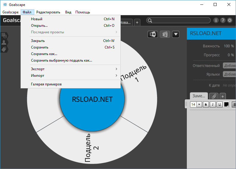 Goalscape Desktop 2.9.5 разработана компанией Goalscape Software GmbH как инструмент для визуализации целей. Интерфейс построен по принципу радиальной диаграммы, где главная цель находится в центре, а вложенные задачи располагаются вокруг неё. Такой подход упрощает восприятие сложных планов и помогает сосредоточиться на приоритетах. Каждый проект сохраняется отдельно, что позволяет вести несколько направлений одновременно — от планирования карьерного роста до организации крупного мероприятия. Программа поддерживает русский язык, благодаря чему её легко освоить пользователям из русскоязычных стран.