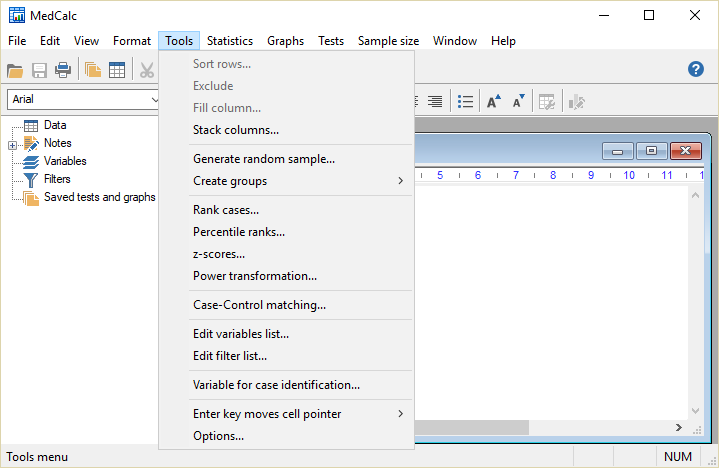 MedCalc — это мощный статистический калькулятор, разработанный специально для анализа медицинских и биологических данных. Программа сочетает в себе удобную электронную таблицу с возможностью работы более чем со 100 000 строк и широким набором статистических инструментов. Она поддерживает импорт данных из различных источников, включая Excel, SPSS, DBase, Lotus, а также текстовые форматы и SYLK, что делает её совместимой с большинством исследовательских платформ. Пользователи могут легко сортировать, фильтровать и редактировать данные, а также обрабатывать пропущенные значения и создавать подгруппы для детального анализа.