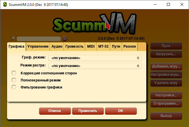 ScummVM не поставляется с играми — их необходимо добавить вручную из имеющихся у пользователя копий.