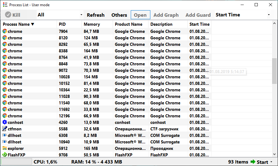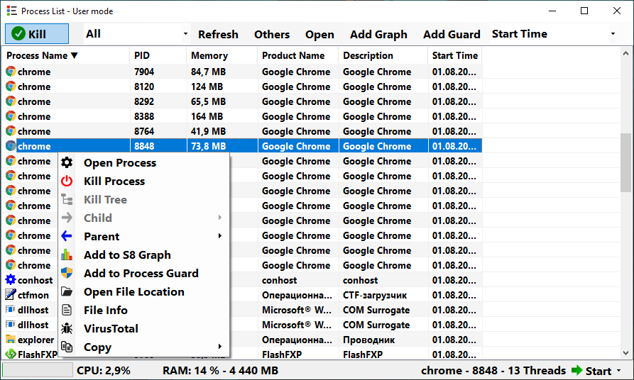 myProcesses 1.2.0.9 — компактная и функциональная утилита для мониторинга и управления системными процессами, сочетающая в себе возможности расширенного диспетчера задач и средства диагностики производительности. Программа позволяет анализировать поведение запущенных приложений, отслеживать нагрузку на процессор, контролировать автозагрузку и блокировать подозрительные процессы. Утилита работает без установки и предоставляет доступ к детализированной истории процессов.