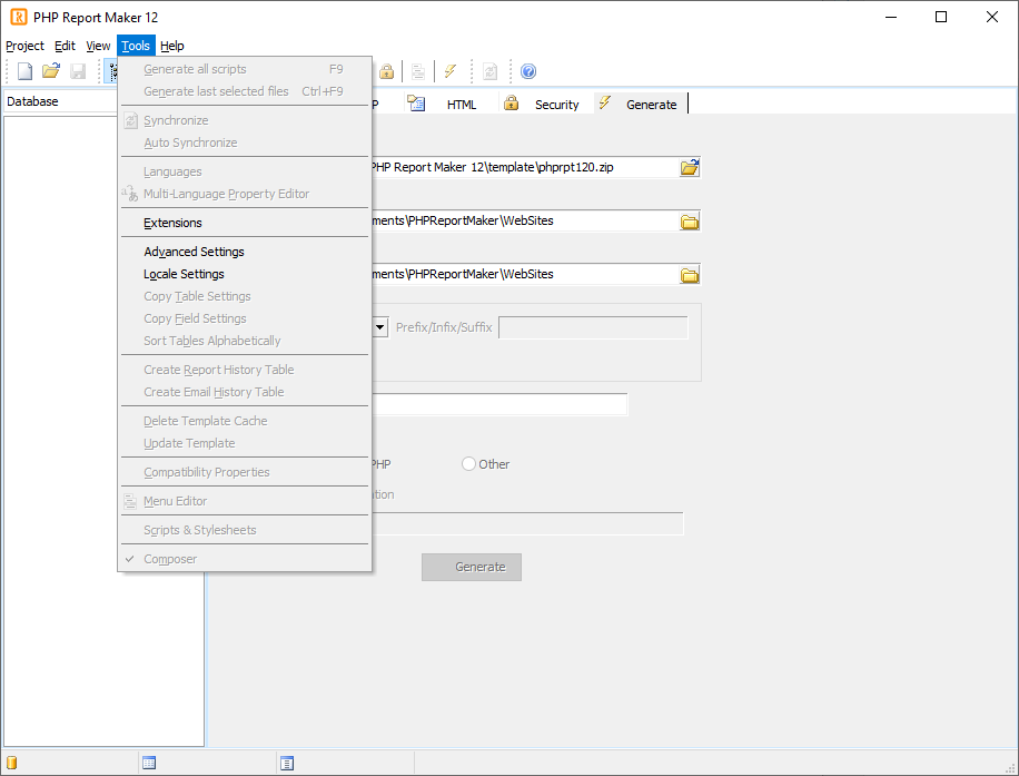 Работа с PHP Report Maker