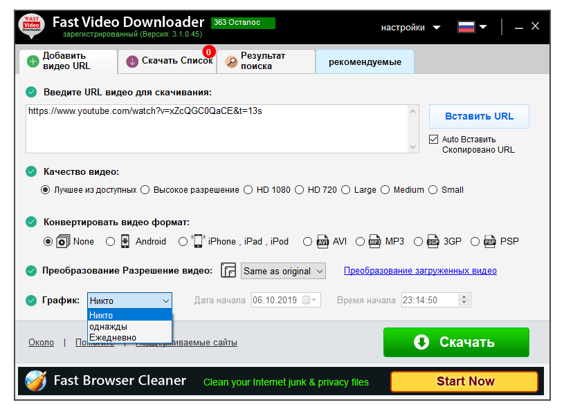 Работа с Fast Video Downloader