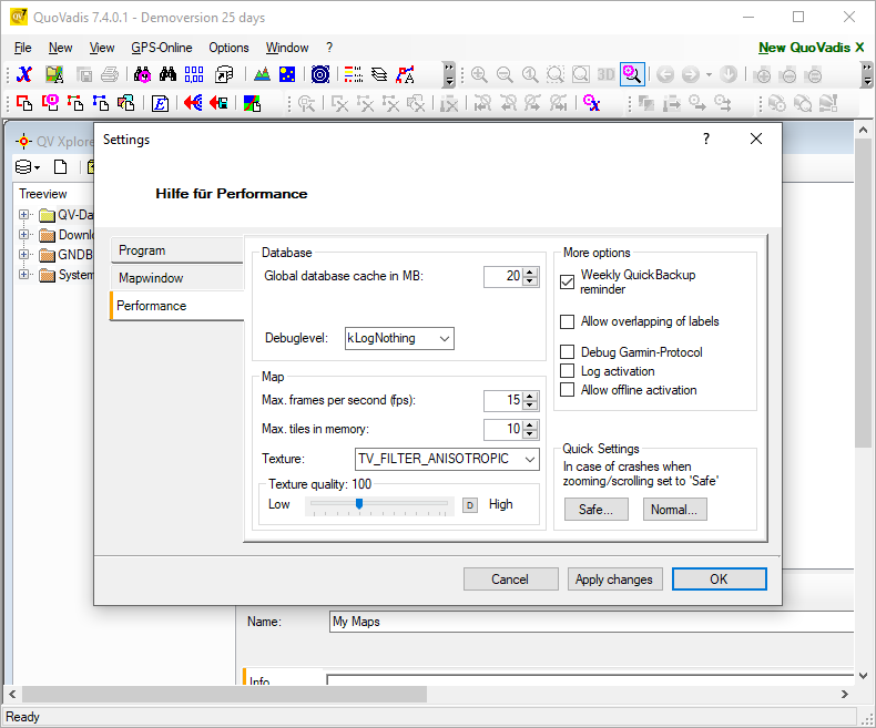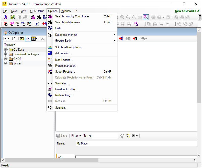 QuoVadis 7.4.0.9 — программное обеспечение для GPS-навигации и работы с цифровыми картами, предназначенное для планирования маршрутов, туров и экскурсий на открытой местности. Приложение поддерживает широкий спектр картографических источников, включая онлайн-сервисы и локальные файлы, а также позволяет экспортировать и импортировать данные с GPS-устройств. Программа подходит как для туристов, так и для специалистов, которым необходима точная визуализация маршрутов и рельефа местности.