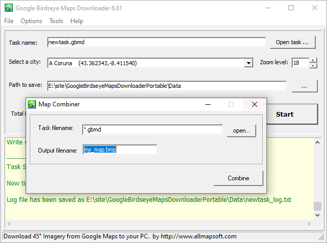 Google Birdseye Maps Downloader разработана компанией allmapsoft и предназначена для захвата картографических изображений напрямую из сервисов Google Maps. Приложение работает в режиме загрузчика, позволяя собирать тайлы спутниковых снимков по заданным координатам. После скачивания файлы можно объединить в единую карту или просматривать отдельно с помощью встроенного средства просмотра. Интерфейс приложения остаётся довольно примитивным, но функционал охватывает базовые потребности в получении изображений с высоты.