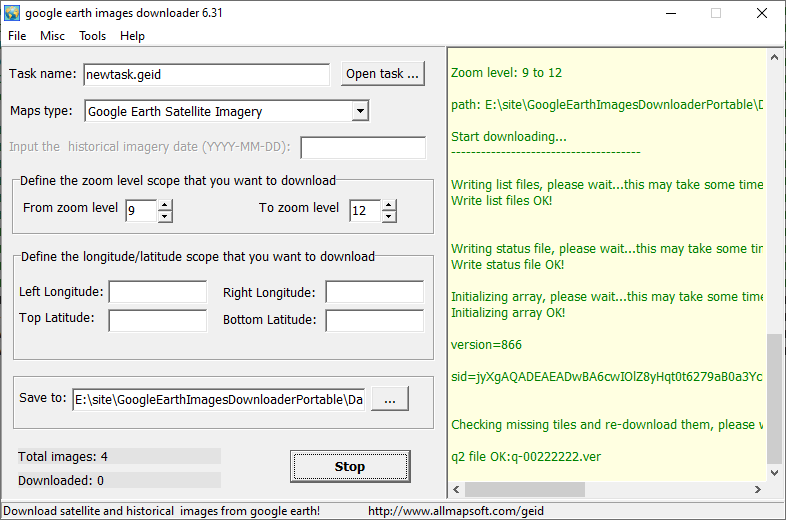 Google Earth Images Downloader предоставляет доступ к спутниковым изображениям, которые загружаются напрямую из базы данных Google Earth. Пользователь может указать точные географические координаты — левую и правую долготу, верхнюю и нижнюю широту — чтобы выделить нужный регион для захвата. Программное обеспечение позволяет ограничивать процесс загрузки по уровням масштабирования, что помогает управлять объёмом данных и избегать избыточного потребления трафика. В результате формируется набор мелких изображений, которые можно объединить в единую карту с помощью встроенных утилит.