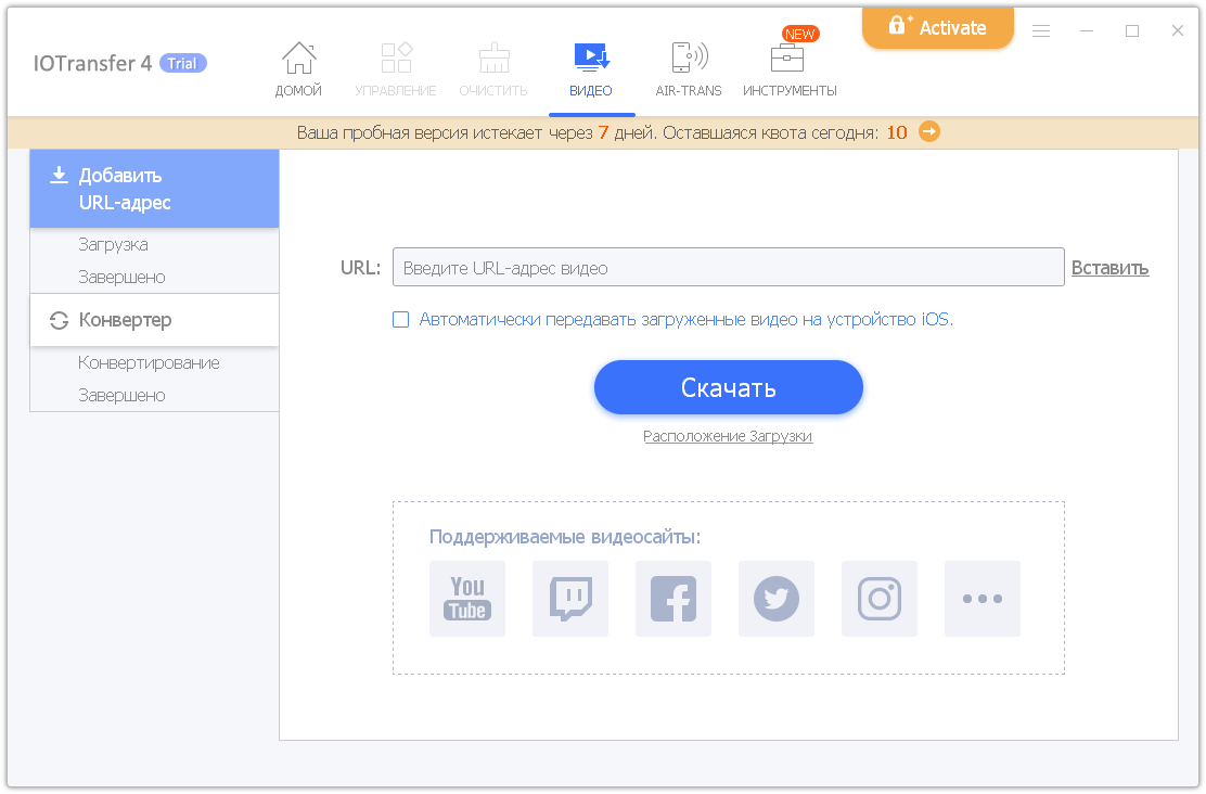 IOTransfer Pro 4.3.1.1562 — удобное приложение для передачи данных между iOS-устройствами и компьютером на базе Windows. Программа поддерживает обмен фотографиями, музыкой, видео, приложениями, подкастами и электронными книгами. Интерфейс интуитивно понятен, а наличие русского языка делает использование простым и комфортным.