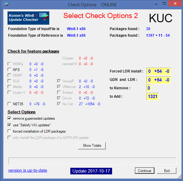 Использование программы начинается с запуска исполняемого файла с повышенными привилегиями. После запуска Windows Update Checker автоматически определяет версию операционной системы и инициирует процесс сканирования через встроенные механизмы Windows. На первом этапе формируется список всех установленных пакетов обновлений, затем проводится сравнение с актуальной базой, что позволяет выявить недостающие элементы. Пользователь может задать путь к репозиторию обновлений и рабочей директории, настроить параметры генерации файлов отчетов. Во второй панели доступны дополнительные опции: проверка установленных компонентов, удаление заменённых обновлений, анализ пропущенных пакетов. Результаты отображаются в главном окне, включая общее количество найденных элементов и их статус.
