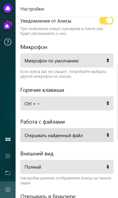 - Предоставляет возможность использовать Алису на ПК без необходимости запуска браузера