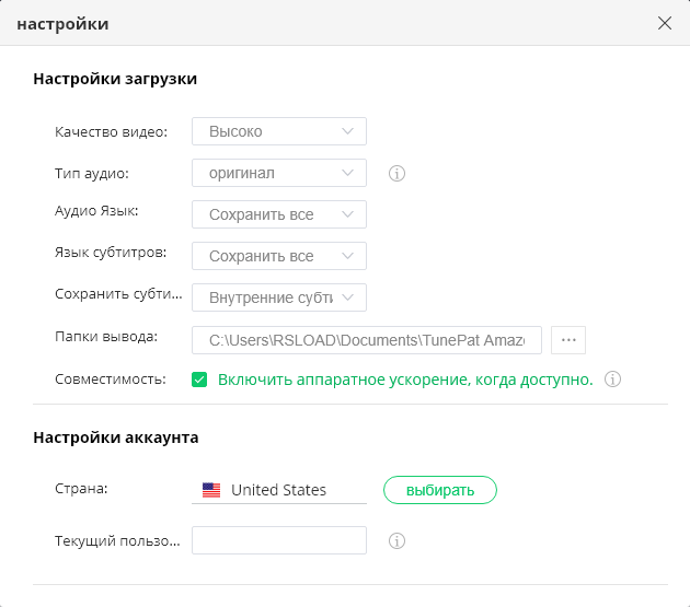 Работа с TunePat Amazon Video Downloader