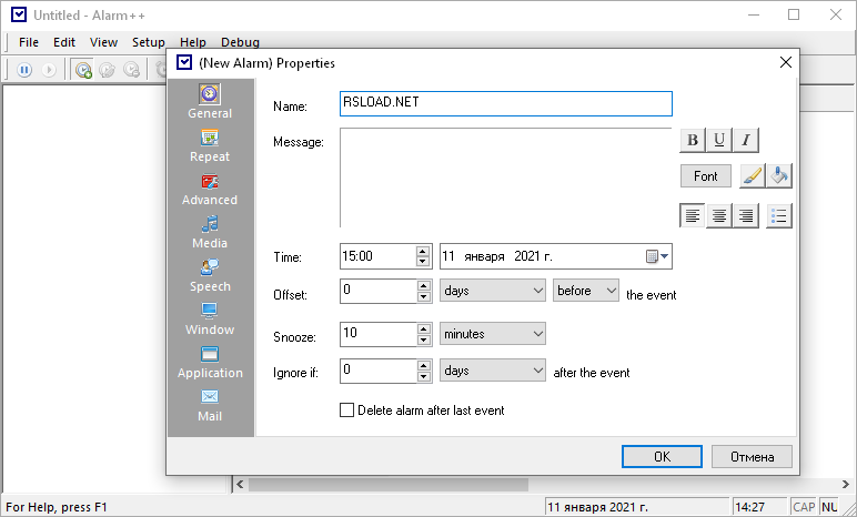 Alarm++ 9.1.5.1048 x64 представляет собой легковесное приложение, ориентированное на пользователей, которым необходимо гибко настраивать напоминания и управлять временем. Программа поддерживает создание множества будильников с различными условиями срабатывания, включая ежедневные, еженедельные, ежемесячные и сложные пользовательские шаблоны повторений. Каждое напоминание можно настроить индивидуально: выбрать мелодию оповещения, задать интервал повторов, указать дату окончания действия или назначить конкретный профиль уведомления. Alarm++ особенно полезна для тех, кто отслеживает важные даты, сроки, регулярные события или просто желает структурировать свой рабочий и личный график.