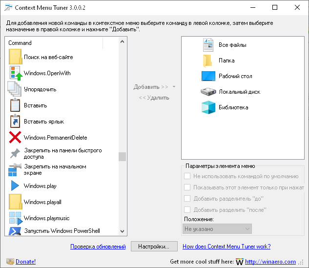 Работа с Context Menu Tuner