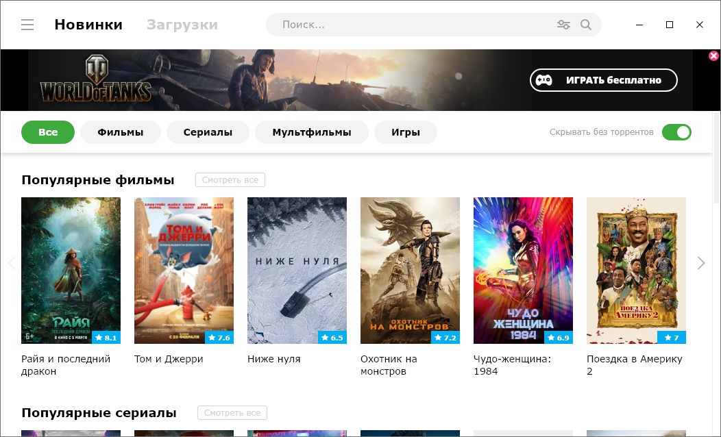 - Онлайн-просмотр фильмов и сериалов без необходимости скачивания