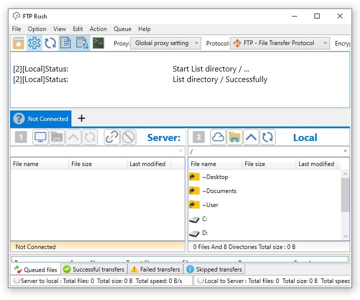 FTP Rush 3.5.8 Portable — это легковесный, функциональный клиент для передачи файлов, поддерживающий FTP, FXP, SFTP и TFTP. Программа сочетает высокую скорость работы, поддержку нескольких соединений и удобный интерфейс, что делает её подходящим решением для управления серверами и обмена данными. Несмотря на отсутствие официальной версии на русском, программой легко пользоваться благодаря интуитивной навигации и стабильной работе.