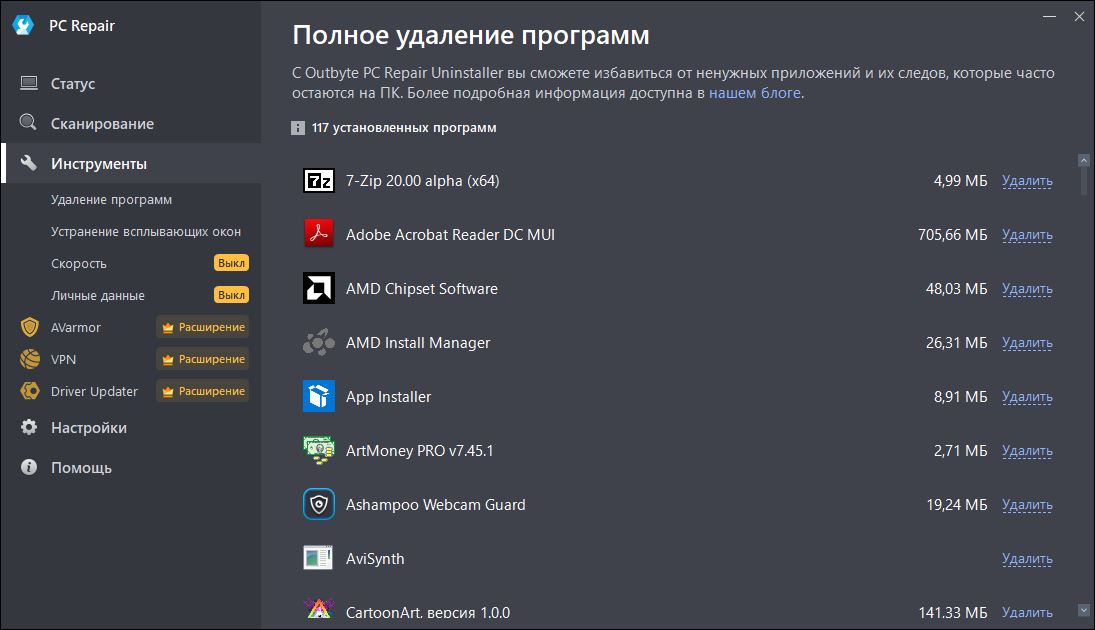 Работа с OutByte PC Repair
