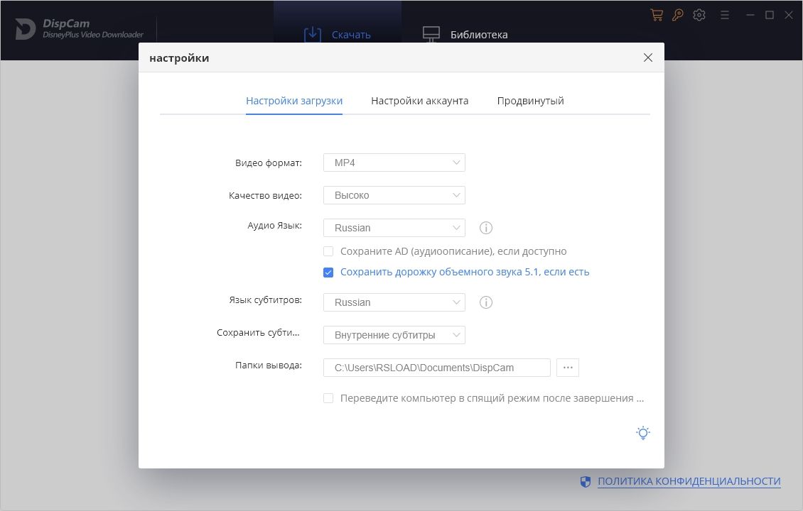 DispCam 1.1.8 — это программное обеспечение для загрузки видео с популярных стриминговых платформ, включая контент Disney, Pixar, Marvel и других связанных сервисов. Приложение позволяет сохранять фильмы, сериалы и анимацию в высоком качестве с возможностью выбора аудиодорожек и субтитров. Утилита поддерживает форматы mp4 и mkv, совместимые с большинством устройств и медиаплееров.