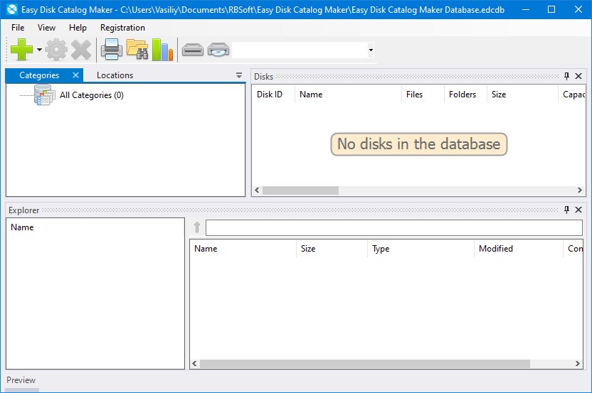 Easy Disk Catalog Maker разработан для эффективного управления большими объемами данных, хранящихся на съемных носителях. Программа автоматически присваивает каждому добавленному диску уникальный идентификатор и фиксирует его физическое местоположение, что упрощает последующий поиск. Интерфейс разделён на три зоны: в левой панели отображается структура каталога, в центре — содержимое выбранного элемента, а справа можно настроить параметры отображения и свойства.