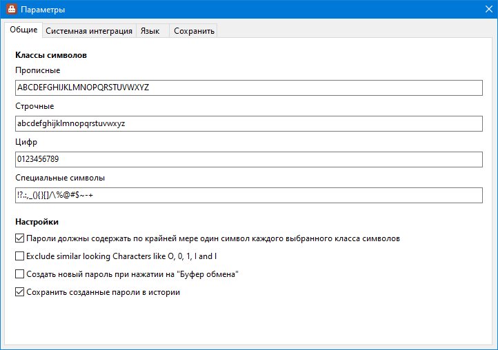 - Генерация паролей с включением прописных и строчных букв, цифр и специальных символов