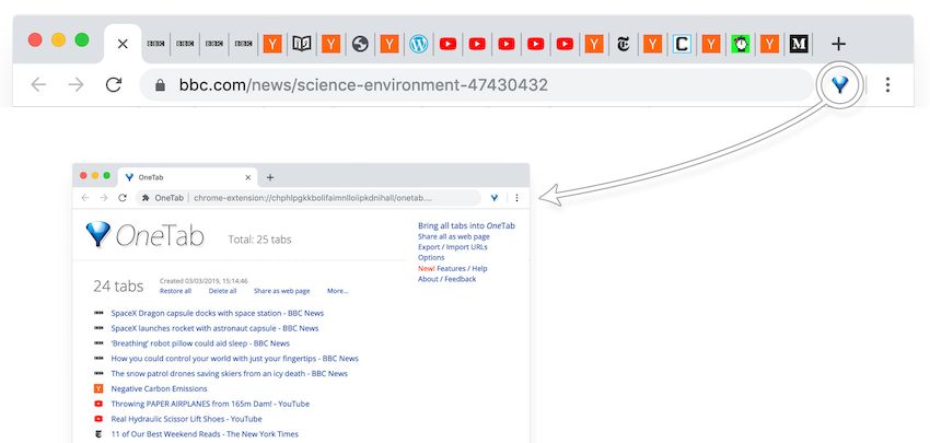 Использование OneTab позволяет не только ускорить работу Chrome, но и избежать сбоев из-за перегрузки памяти.