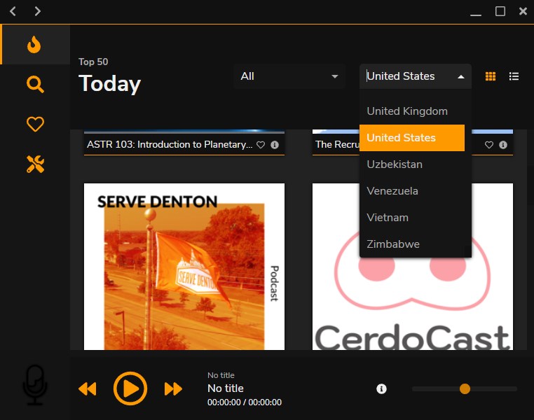 Использование программы начинается с запуска интерфейса, где пользователь видит список популярных подкастов, отсортированных по умолчанию в соответствии с выбранным регионом. Для поиска конкретного шоу можно воспользоваться строкой поиска или перейти в раздел по жанрам, что упрощает навигацию. При выборе интересующего канала открывается список доступных эпизодов, каждый из которых сопровождается описанием, длительностью и датой выхода. Нажатие на эпизод запускает его воспроизведение в потоковом режиме без задержек. Пользователь может добавить подкаст в избранное, чтобы быстро возвращаться к нему в будущем. Настройки позволяют менять цветовую тему и устанавливать предпочитаемую страну для отображения контента. Однако, отсутствие учётной записи означает, что все изменения остаются локальными и не переносятся на другие устройства.