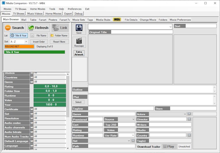 Media Companion 3.770 Beta x64 — это удобный инструмент для автоматической организации видеоколлекций на компьютере, предоставляющий доступ к детальной информации о фильмах, сериалах и домашних записях без необходимости установки. Программа определяет названия файлов, подключается к онлайн-базам данных и загружает постеры, описания, актёрский состав, рейтинги и другую мультимедийную информацию. Благодаря поддержке 64-битной архитектуры, media companion демонстрирует стабильную работу даже с большими библиотеками.
