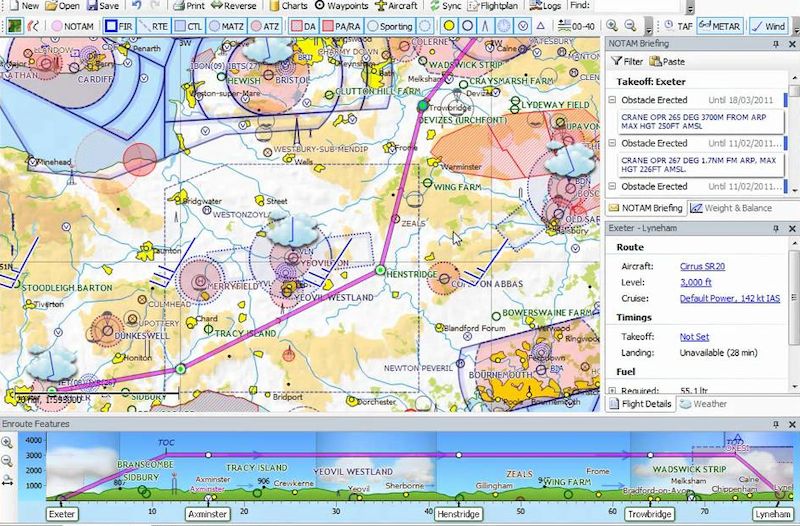 - Автоматическая загрузка NOTAM, METAR, TAF и прогнозов ветра на высоте