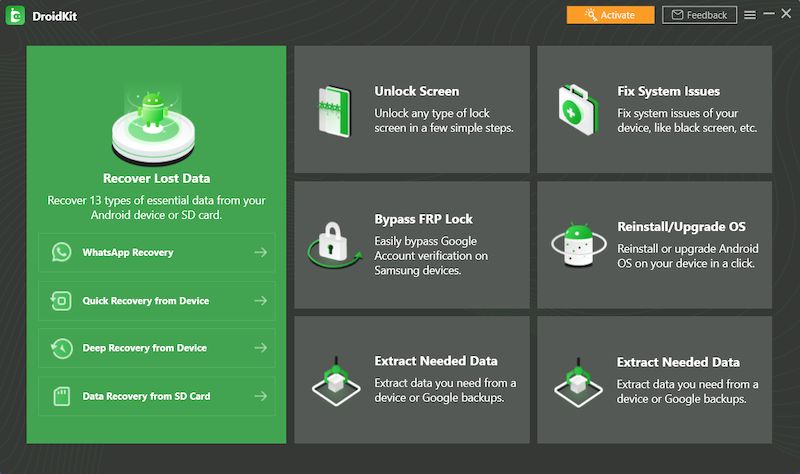 IMobie DroidKit — программное решение для восстановления данных, разблокировки Android-устройств и устранения системных сбоев. Утилита работает без root-доступа и поддерживает широкий спектр задач: от очистки мусора до обхода FRP. Интуитивный интерфейс делает её доступной даже для новичков.