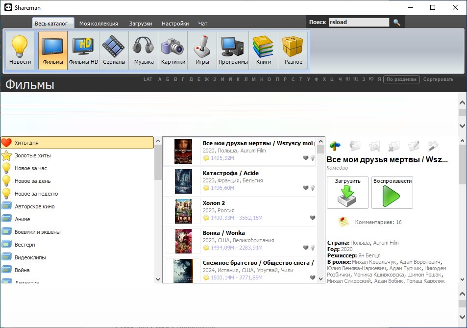 Shareman — это не просто файлообменник, а полноценная платформа для мультимедийного взаимодействия, где можно найти фильмы, слушать музыку и смотреть телепередачи онлайн.