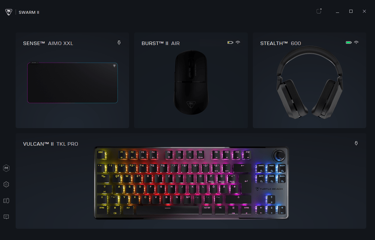 Turtle Beach Swarm II — это современное приложение для управления игровыми устройствами, пришедшее на смену устаревшему Roccat Swarm. Разработанное в 2024 году, программное обеспечение отражает стратегию компании сосредоточиться на собственном бренде, интегрировав поддержку устройств Roccat для обеспечения преемственности. Интерфейс интуитивно понятен, а функционал охватывает ключевые аспекты персонализации игровой периферии. Пользователи получают возможность тонкой настройки своих устройств без необходимости в глубоких технических знаниях.