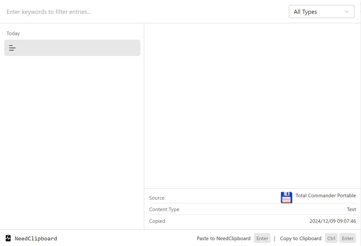 NeedClipboard 0.1.3 x64 — это компактный и эффективный инструмент для управления буфером обмена, который сохраняет всё скопированное содержимое и позволяет быстро к нему вернуться. Программа работает в фоновом режиме, не нагружая систему, и подходит для пользователей, которым приходится часто копировать текст, ссылки, изображения и другие форматы данных. Благодаря интуитивному интерфейсу и минимальным требованиям к ресурсам, NeedClipboard становится незаменимым помощником в повседневной работе с компьютером.