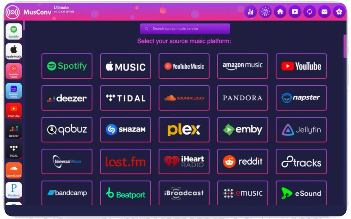 MusConv Lifetime 4.10.440 — это специализированный инструмент для переноса музыкальных плейлистов между различными стриминговыми сервисами. Программа поддерживает широкий спектр платформ, обеспечивая быструю и точную синхронизацию треков, без необходимости ручного поиска и добавления композиций. Благодаря интуитивному интерфейсу и стабильной работе, она становится незаменимым решением для пользователей, активно использующих несколько музыкальных сервисов одновременно.
