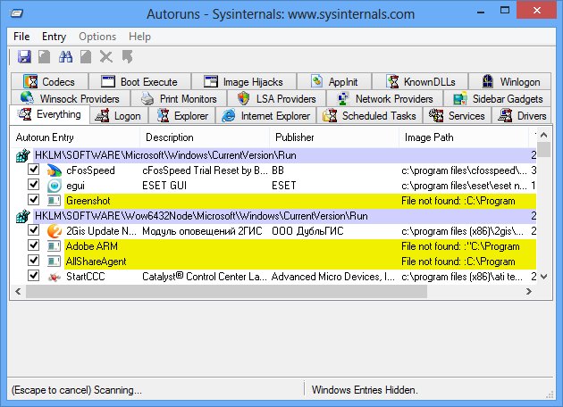 Работа с AutoRuns