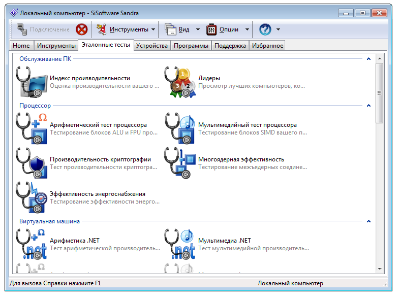 - Позволяет проводить тесты производительности процессора, видеочипа и дисковых подсистем