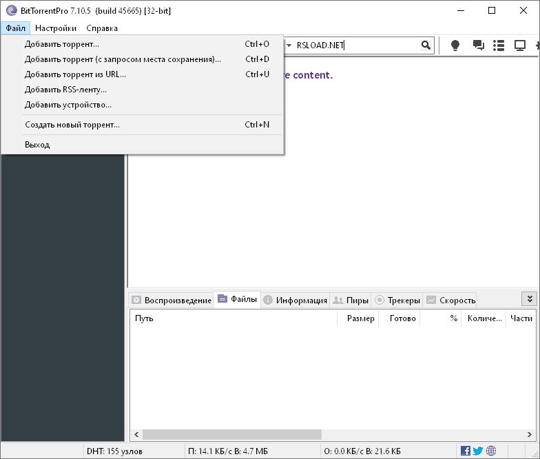 Работа с BitTorrent