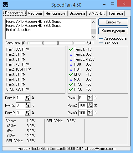 С помощью SpeedFan можно предотвратить перегрев системы, своевременно повысив скорость вращения кулеров при увеличении нагрузки.