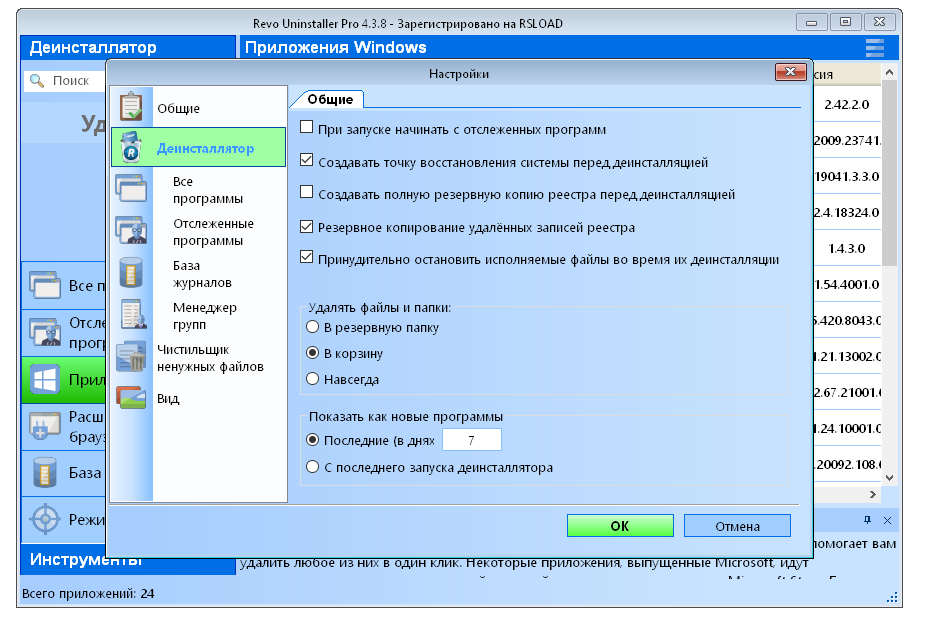- Полное удаление программ с очисткой реестра и остаточных файлов