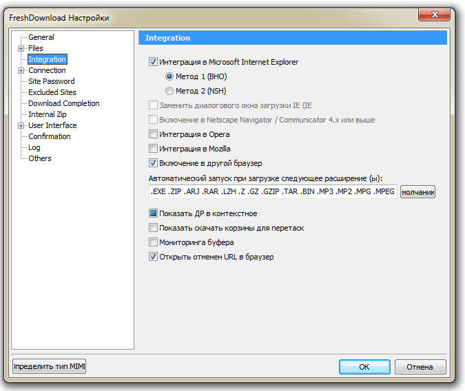 - Возможность интеграции с браузерами и автоматического перехвата ссылок