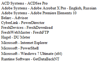 - Отображает установленные программы и их лицензионные ключи