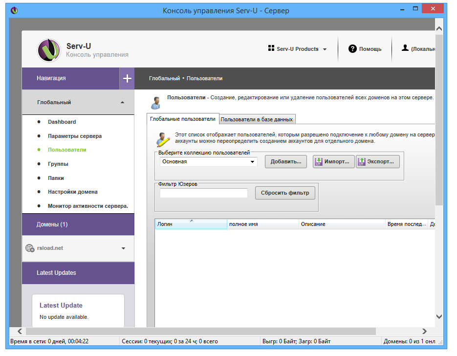 Работа с Serv-U MFT Server / Serv-U File Server Platinum