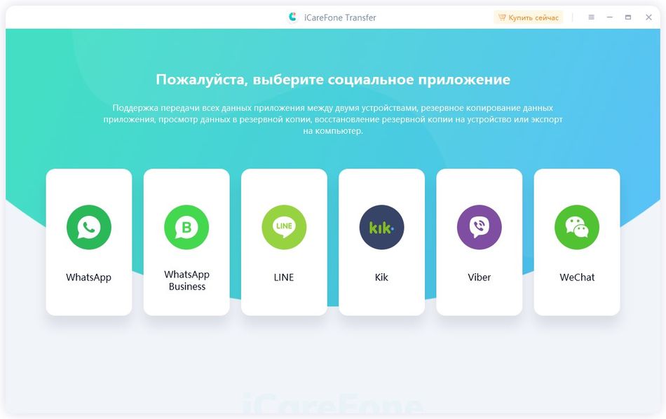 Работа с Tenorshare iCareFone WhatsApp Transfer