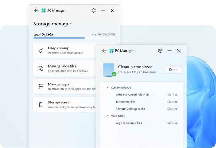 Microsoft PC Manager создан для того, чтобы объединить в одном приложении те системные функции, которые ранее были разрознены по настройкам Windows, что делает уход за компьютером проще и эффективнее.