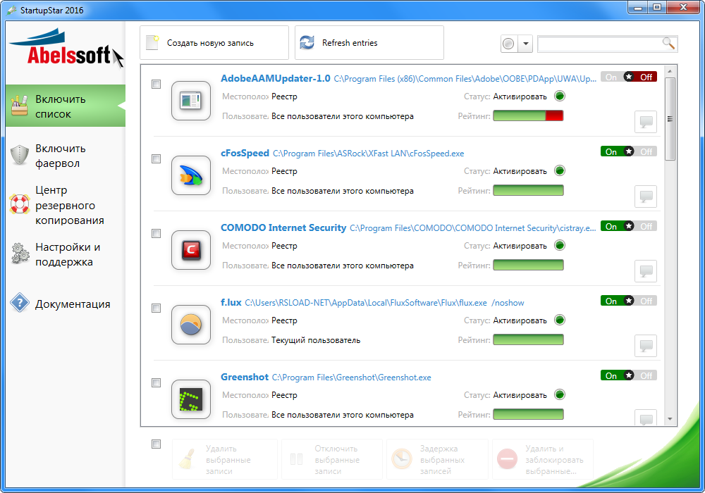 Работа с Abelssoft StartupStar