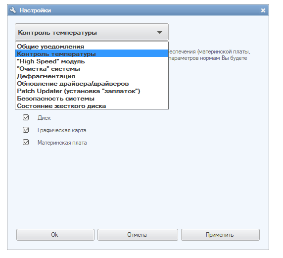 - Удобное окно в трее с быстрым доступом к режиму высокой производительности.