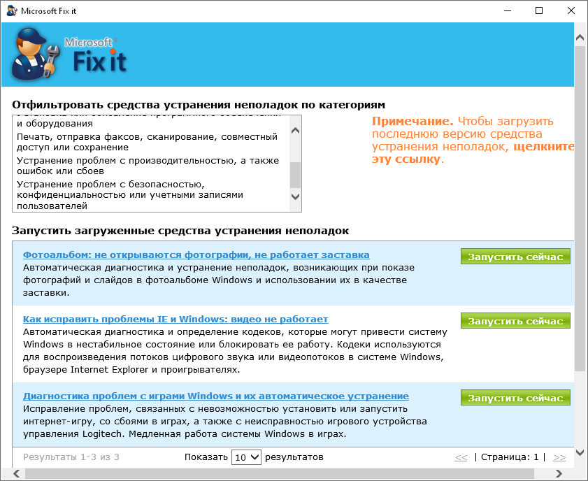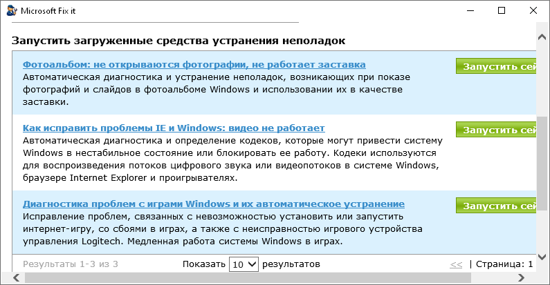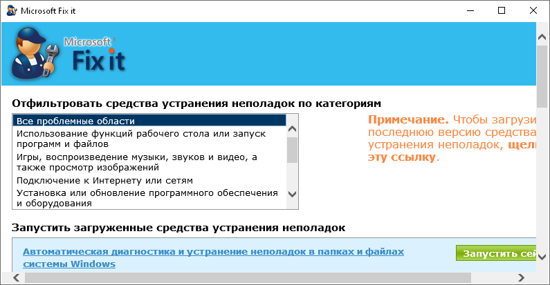 Работа с Microsoft Fixit
