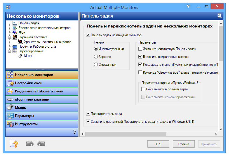 Работа с Actual Multiple Monitors