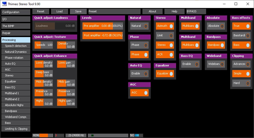 Thimeo Stereo Tool — мощное программное решение для обработки аудиосигнала, предназначенное как для прослушивания музыки высокого качества, так и для профессионального использования в FM-радиовещании. Программа поддерживает расширенные настройки звука, включая эквалайзер, стерео-кодирование, преобразование стерео в моно без потерь и управление балансом частот. Благодаря версии ST-Enterprise 10.71 и интеграции со средой x64, пользователь получает стабильную работу даже при интенсивной обработке потокового аудио.